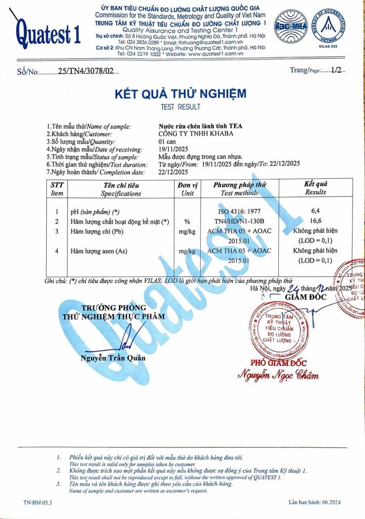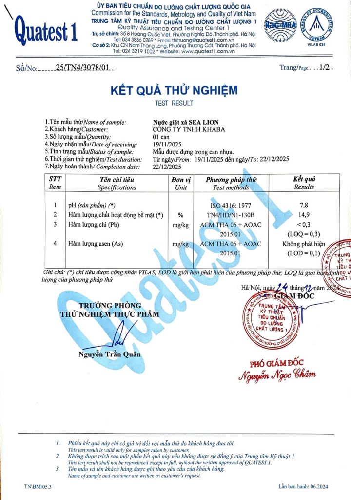👉 Mọi sản phẩm đều được thử nghiệm và đánh giá tại Trung tâm Kỹ thuật Tiêu chuẩn Đo lường Chất lượng 1 (QUATEST 1) – TỔNG CỤC ĐO LƯỜNG CHẤT LƯỢNG VIỆT NAM.